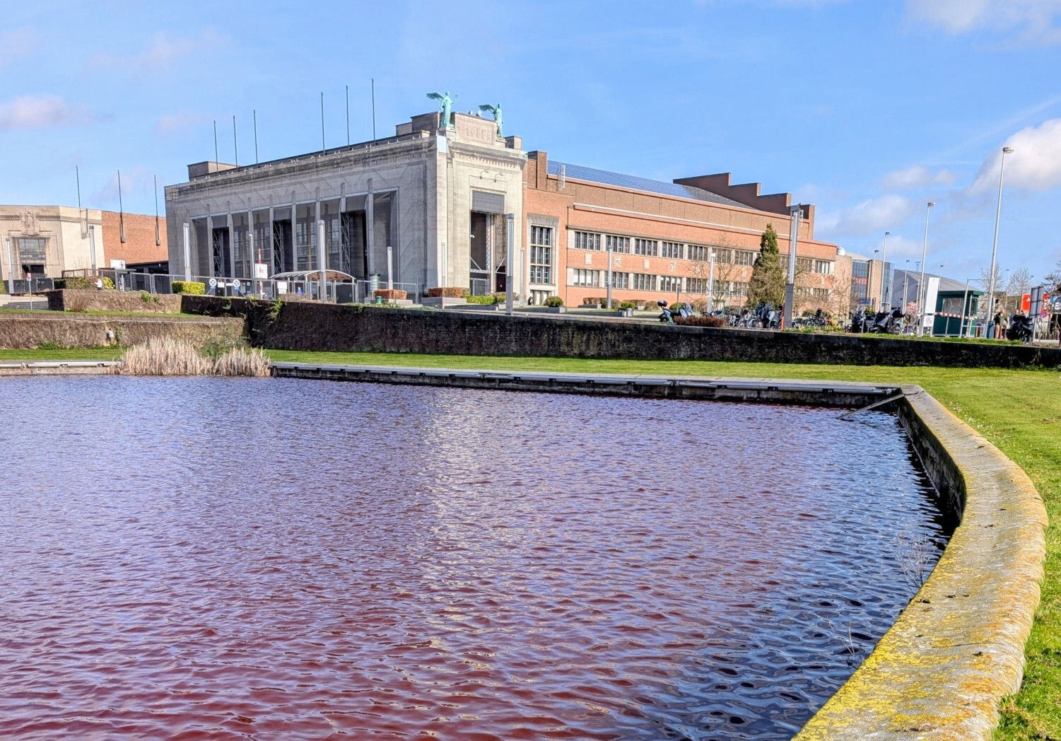 Brussel, 12 maart 2026 - Als visueel protest tegen de Bedex-wapenbeurs die van donderdag tot zaterdag plaatsvindt in de iconische Brusselse expohallen, hebben activisten van de klimaatbeweging Extinction Rebellion (XR) een van de grote vijvers voor het gebouw rood gekleurd*, zodat deze lijkt op een bloedbad, om ‘mensen te laten zien hoe onze toekomst eruit zal zien zolang we onze leiders toestaan om oorlog te promoten en te weigeren om klimaatontwrichting te stoppen’.